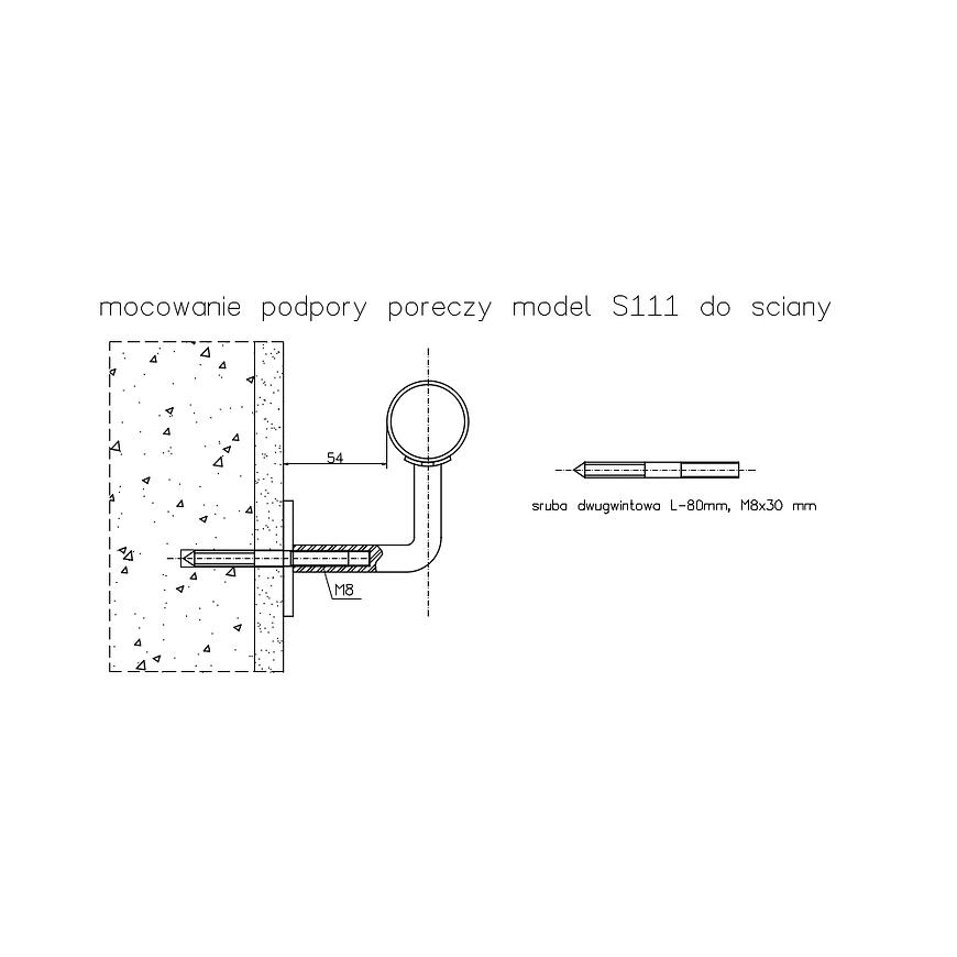 Mocowanie do ściany: 1 punkt zamocowania (gwint M8 od strony wewnętrznej wspornika)