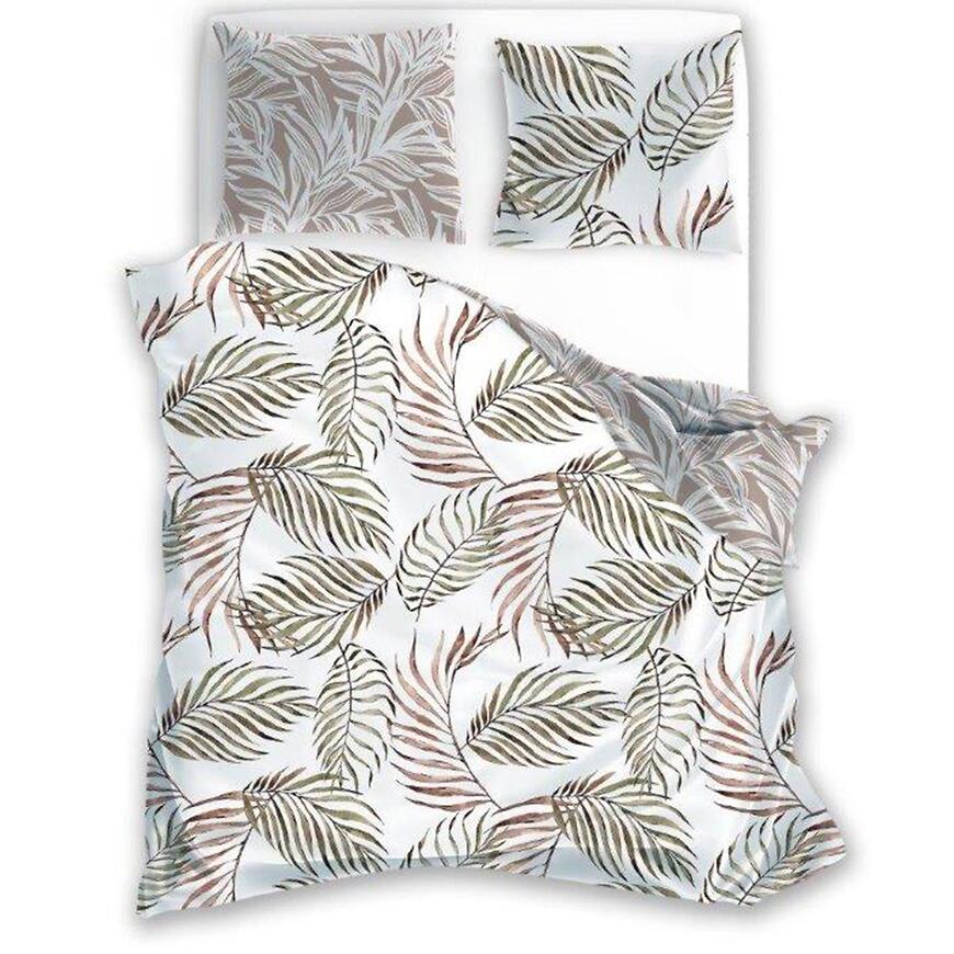 Pościel wykonana jest w 100% z bawełny o satynowym splocie, dzięki czemu tkanina jest delikatna w dotyku, przewiewna i lekko połyskująca. Materiał dobrze układa się na łóżku i sprzyja relaksującemu wypoczynkowi.