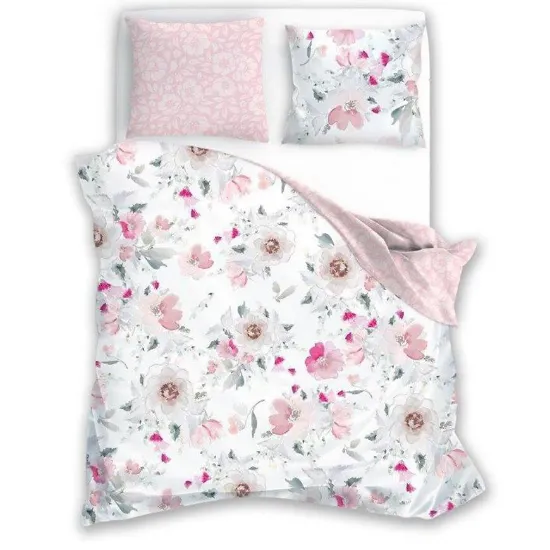 Pościel wykonana jest w 100% z wysokiej jakości bawełny o satynowym splocie, dzięki czemu tkanina jest gładka, miękka i przyjemna w dotyku. Satynowe wykończenie nadaje subtelny połysk, podkreślając elegancki wygląd kompletu. Materiał dobrze układa się na łóżku i sprzyja relaksującemu wypoczynkowi.
