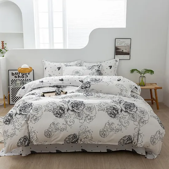 Pościel z mikrofibry ALBS-7395 200x220 Lasher w kolorze czarnym łączy trwałość, wygodę i elegancki design. Idealna do sypialni domowej, pokoju gościnnego lub apartamentu, gwarantuje komfortowy sen oraz nowoczesny i stylowy wystrój wnętrza.