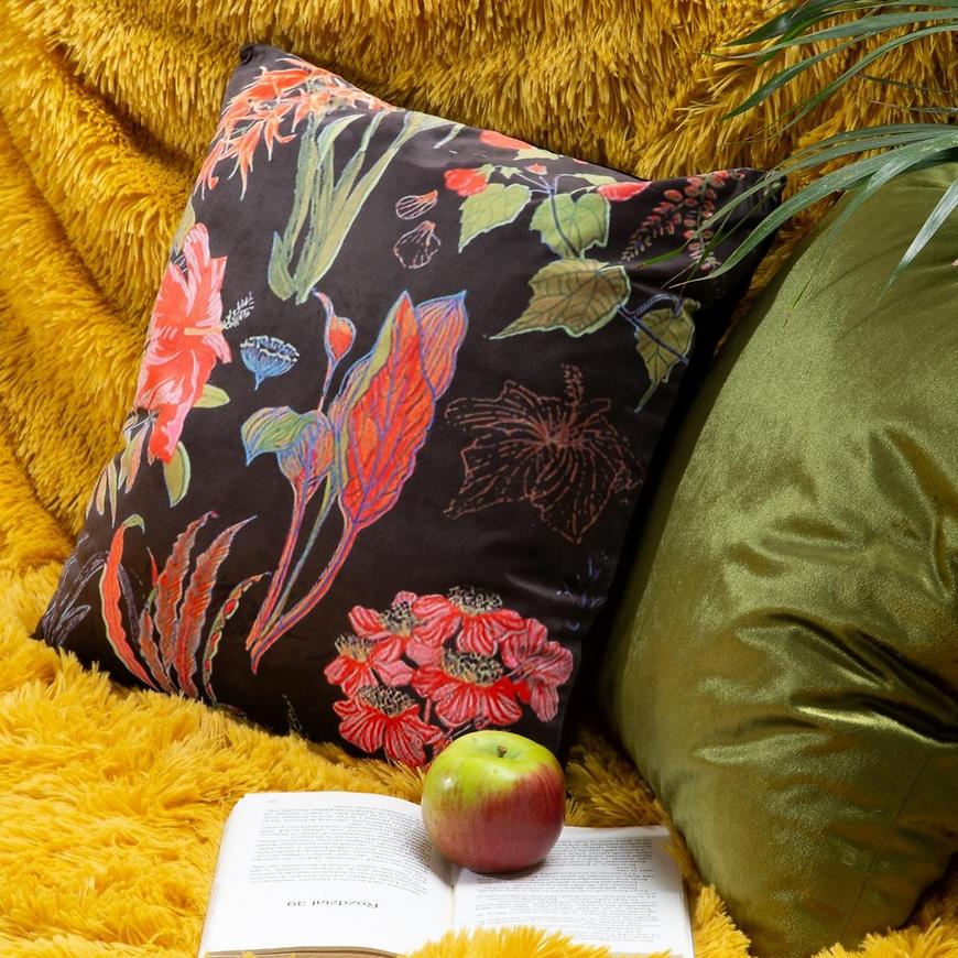 Poszewka Flar to wyjątkowy dodatek dekoracyjny, łączący w sobie welwetową elegancję z kolorowym nadrukiem. Poszewka Flar ma standardowe wymiary 45 cm na 45 cm, co czyni ją odpowiednią do poduszek o powszechnym rozmiarze. Uniwersalne wymiary ułatwiają łatwe dopasowanie do różnych stylów wnętrz.