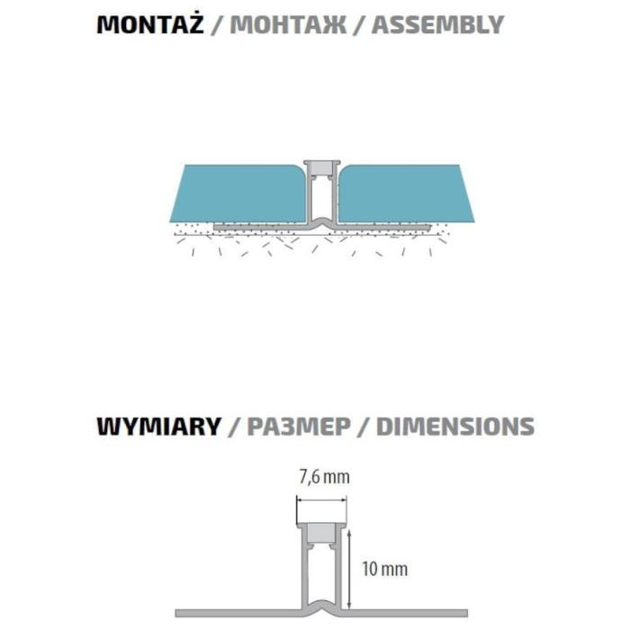 Profil dylatacyjny o długości 250 cm i szerokości 4,7 cm służy do oddzielenia (podzielenia/zdylatowania) powierzchni. Ogranicza przeciążenia, pęknięcia, a także odkształcenia w płytkach położonych na podłodze.