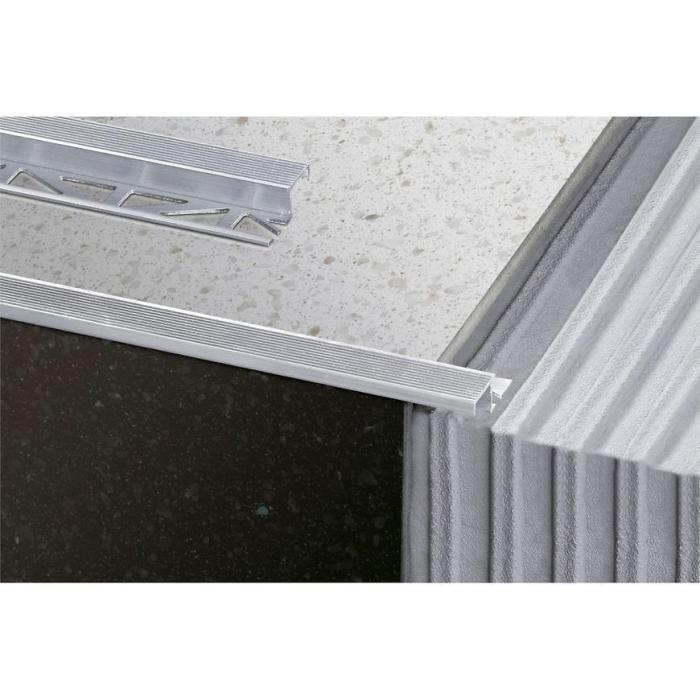 Profil służy do ochrony krawędzi stopni schodowych, wyłożonych płytkami ceramicznymi. Powierzchnia jest ryflowana, co tworzy zabezpieczenie antypoślizgowe.