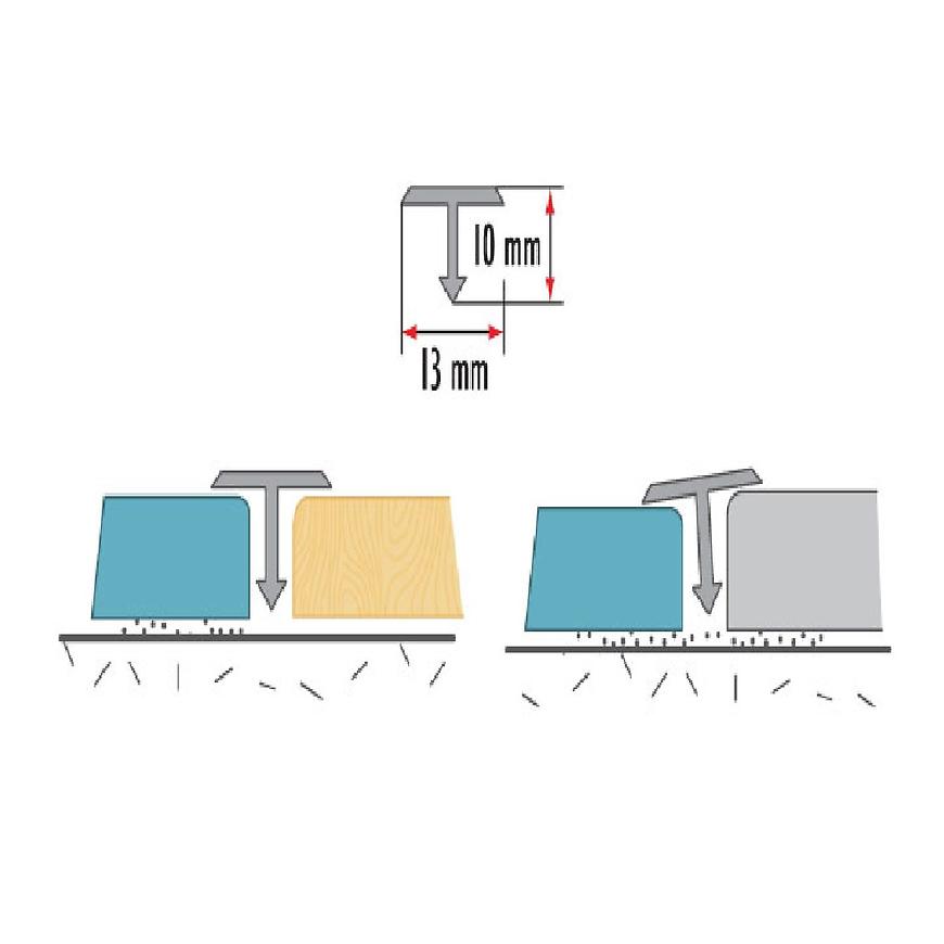 Profil T służy do wykończenia podłogi, poprzez łączenie powierzchni pokrytych płytkami ceramicznymi, drewnem lub panelami. Profil pozwala na estetyczne wykończenie powierzchni i zamaskowanie szczelin, również o łukowatych kształtach. Dodatkowo, profil pozwala niwelować niewielkie różnice wysokości powierzchni.