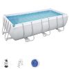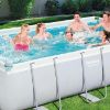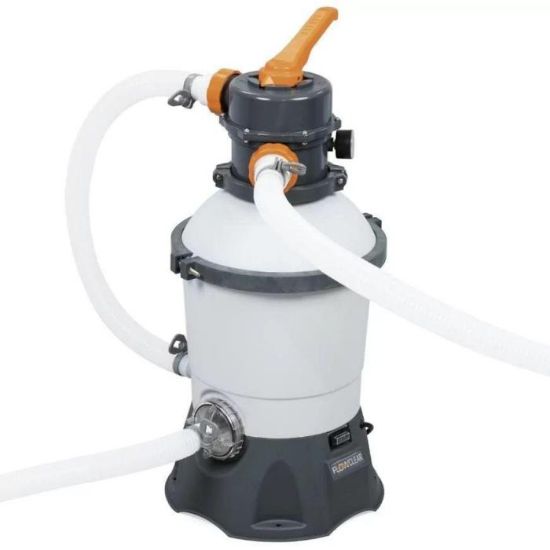 - wbudowany zawór kontroli przepływu ułatwiający spuszczanie wody, podłączając zawór do węża ogrodowego (z dołączonym adapterem) można szybko i sprawnie spuścić wodę z basenu,