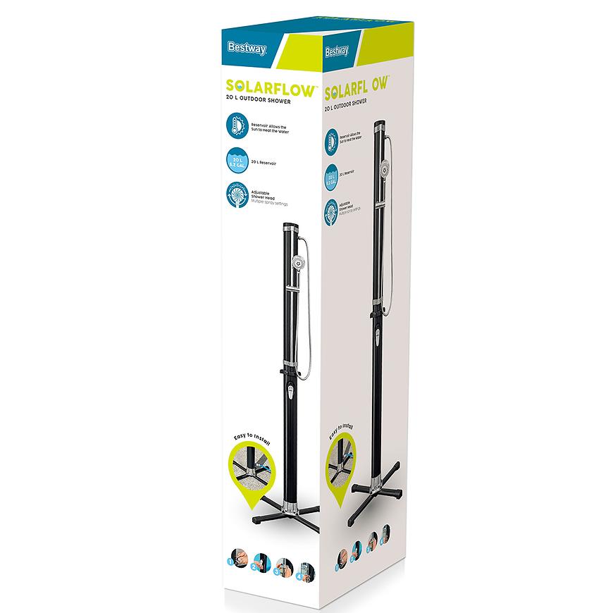 Poczuj odświeżenie na nowo dzięki prysznicowi zewnętrznemu Bestway® SolarFlow™ o pojemności 20 L (5.2 Gal.). Idealny dla posiadaczy basenów, miłośników aktywności na świeżym powietrzu, plażowiczów czy każdego, kto pragnie odświeżyć się po intensywnych zajęciach na świeżym powietrzu. Ten wygodny prysznic na świeżym powietrzu zapewnia nie tylko chłodzącą odmianę, ale także możliwość skorzystania z różnych trybów natrysku, dostosowanych do Twoich preferencji.