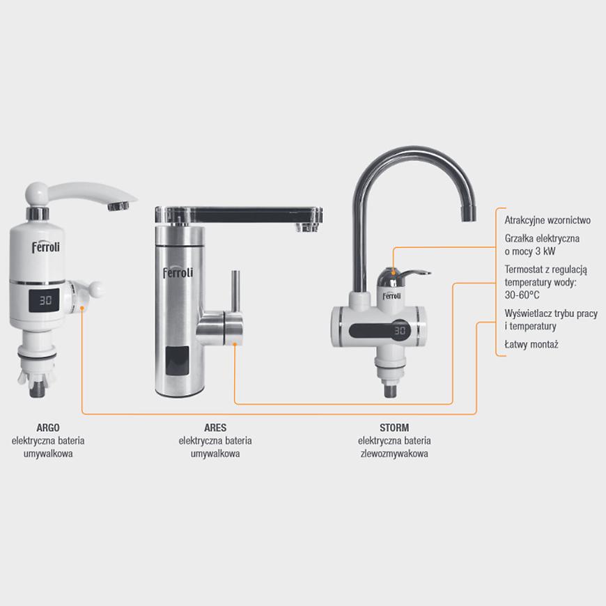 Podgrzewacz ARGO cechuje się kompaktowym designem, umożliwiając łatwy montaż w każdym pomieszczeniu z dostępem do wody i źródła zasilania 230V. Kabel z wtyczką ułatwia podłączenie, a stopień ochrony IPx4 gwarantuje trwałość i bezpieczeństwo w każdych warunkach. Z 24-miesięczną gwarancją, ARGO to nie tylko efektywne, ale również niezawodne rozwiązanie dla zapewnienia ciepłej wody w codziennym użytkowaniu.