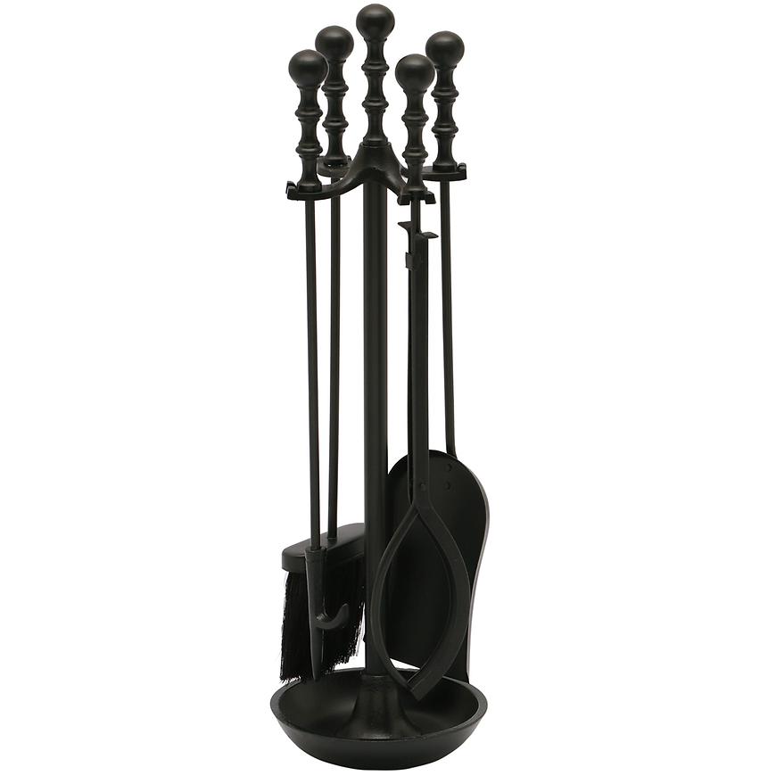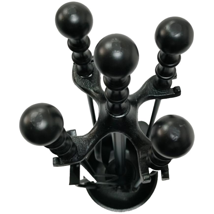 Zestaw przeznaczony do czyszczenia kominka, w skład zestawu wchodzą: pogrzebacz, szufelka, szczypce oraz szczotka. Wszystkie elementy zawieszona sa na praktycznym wieszaku. Dostępny w kolorze czarnym wykonany ze stali.