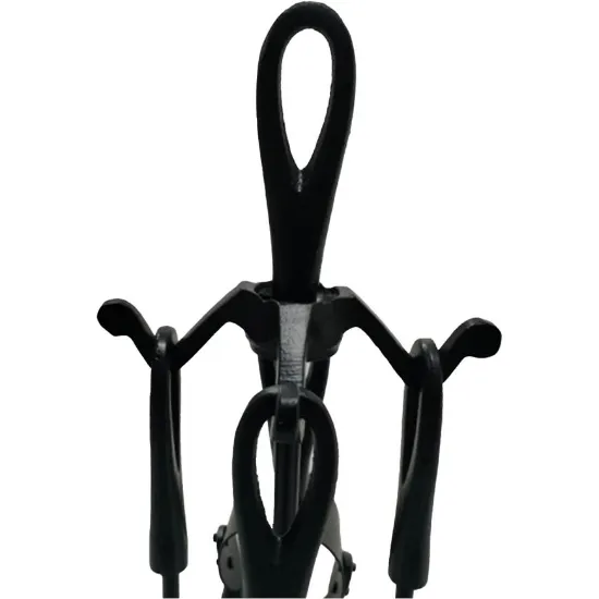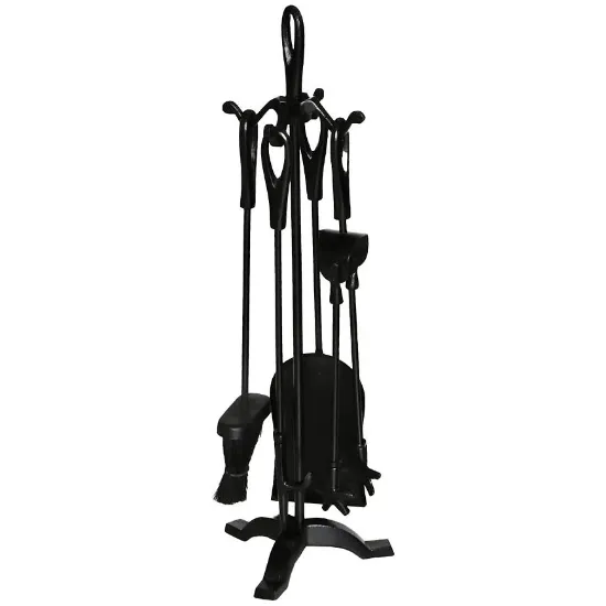 Zestaw przeznaczony do czyszczenia kominka, w skład zestawu wchodzą: pogrzebacz, szufelka, szczypce oraz szczotka. Wszystkie elementy zawieszona sa na praktycznym wieszaku. Dostępny w kolorze czarnym wykonany ze stali.