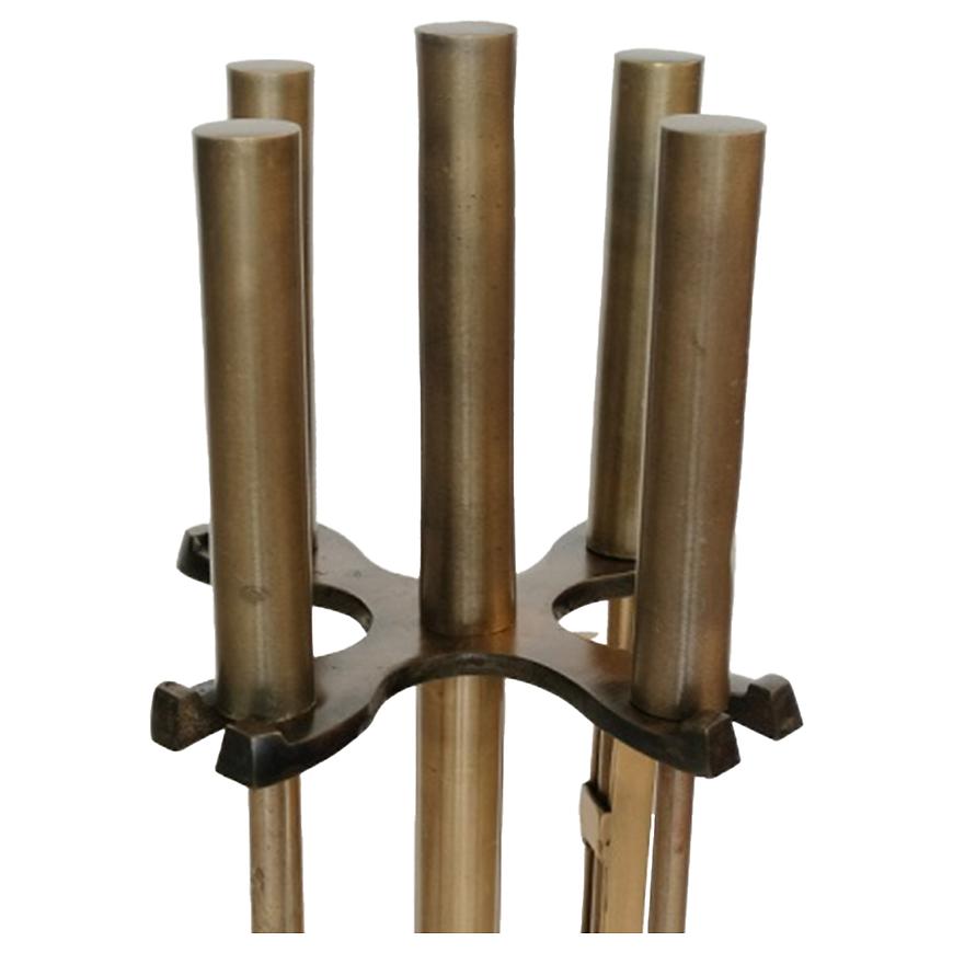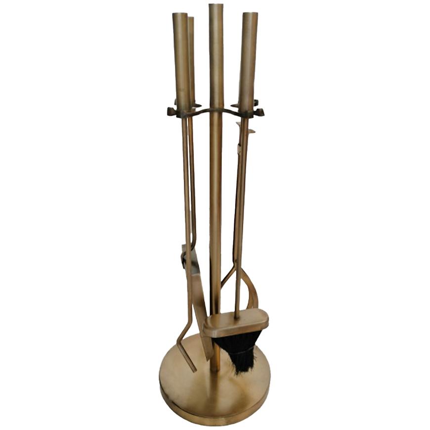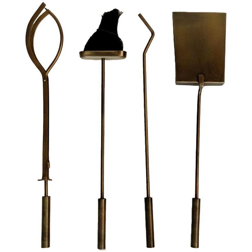 Zestaw przeznaczony do czyszczenia kominka, w skład zestawu wchodzą: pogrzebacz, szufelka, szczypce oraz szczotka. Wszystkie elementy zawieszone są na praktycznym wieszaku. Dostępny w kolorze złotym wykonany ze stali.