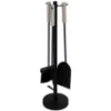 Zestaw z czterch elementów: stojak, szufelka, miotełka, hak (pogrzebacz). Wykonany ze stali.