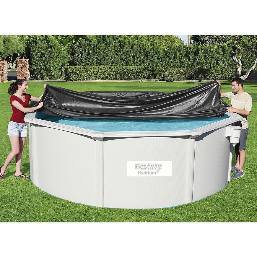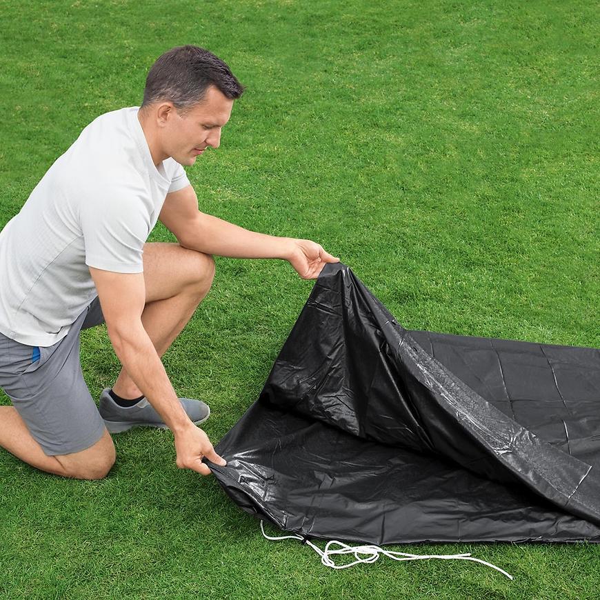 Praktyczne przykrycie basenu, dzięki któremu nic nam nie wpadnie do wody kiedy z niego nie korzystamy. Przykrycie basenu to przydatna rzecz aby zachować czystość w basenie. Posiada niewielkie otwory, dzięki którym woda nie gromadzi się na powierzchni.