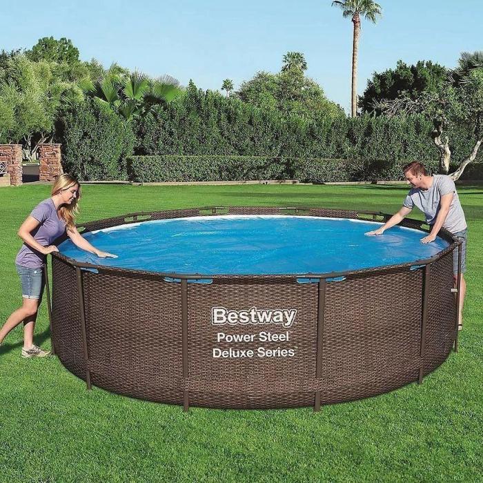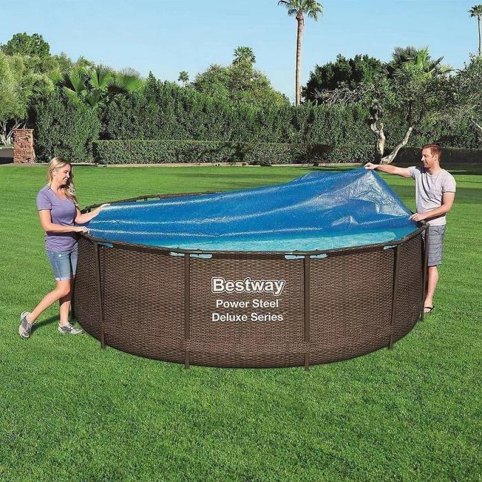 Przykrycie solarne na basen 3,66 m Bestway 58242 to praktyczne rozwiązanie, które nie tylko chroni wodę przed zabrudzeniami, ale także pomaga w jej podgrzewaniu dzięki wykorzystaniu energii słonecznej. Najważniejsze cechy produktu: