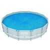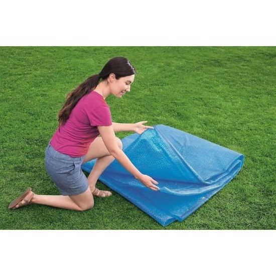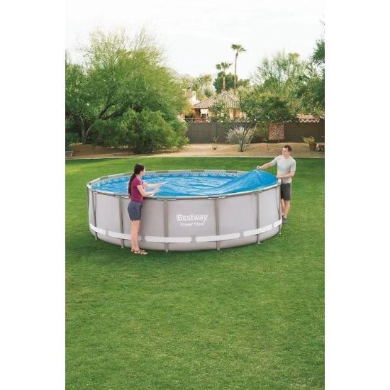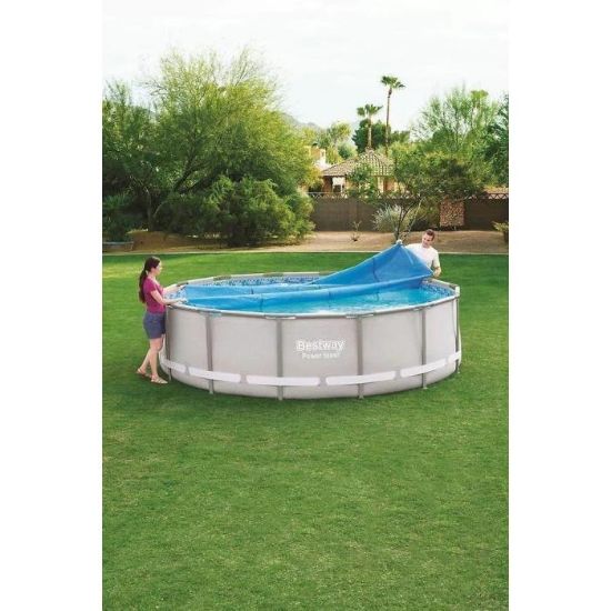 Przykrycie solarne do basenu pasuje do basenów o średnicy 4,27m. Gruby, podwójny materiał jest bardzo wytrzymały, chroni basen przed zanieczyszczeniami, ale także wyziębieniem wody - dzięki swoim właściwościom podtrzymuje dodatnią temperaturę wody, co jest bardzo ekonomiczne.