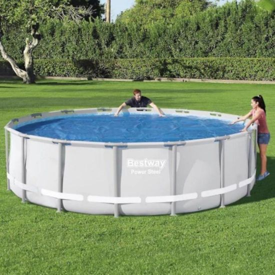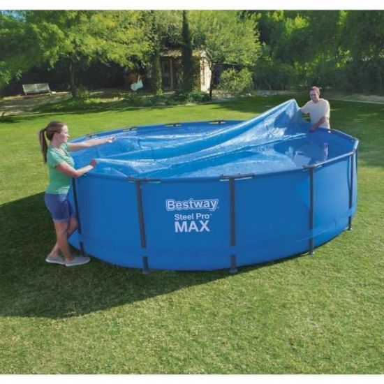 Pokrycie jest idealne do basenów naziemnych takich jak Bestway® Fast Set™ Ø18' (5,49 m), Power Steel™ Ø16' (4,88 m) oraz Steel Pro™ Ø15' (4,57 m). Dzięki prostemu zakładaniu, łatwo zapewnisz sobie czystą wodę i dłuższy sezon pływacki. Przedłuż radość z kąpieli w basenie dzięki przykryciu solarnemu Bestway® Solar!