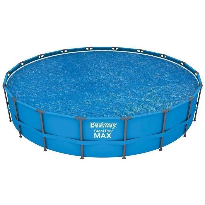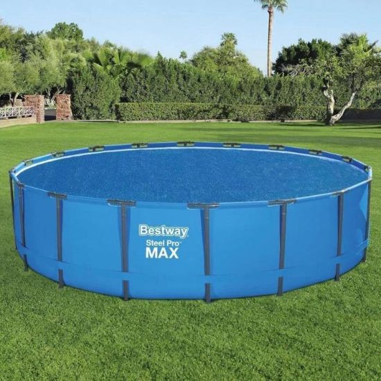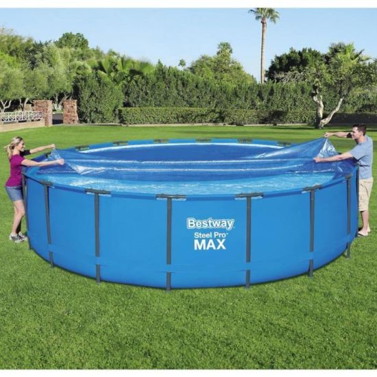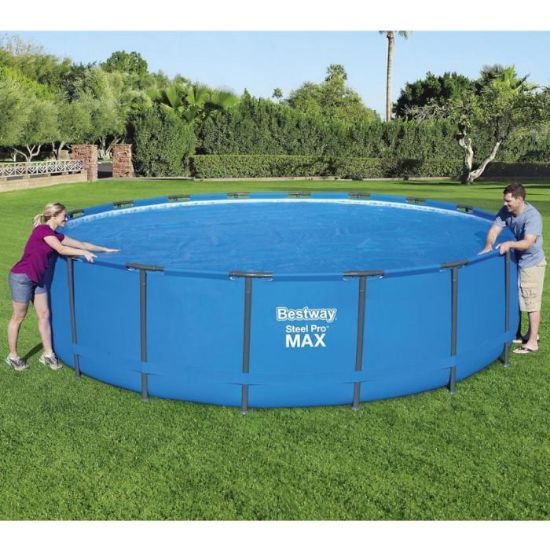 Zachowaj ciepło wody i czystość basenu przez cały sezon dzięki osłonie solarnej Bestway® Flowclear™ 58173. Pokrywa została zaprojektowana z myślą o basenach naziemnych o średnicy 5,49 m (Ø18') z serii Steel Pro™ i Power Steel™. Dzięki technologii solarnej osłona tworzy efekt cieplarniany, podnosząc temperaturę wody i jednocześnie zapobiegając jej parowaniu.