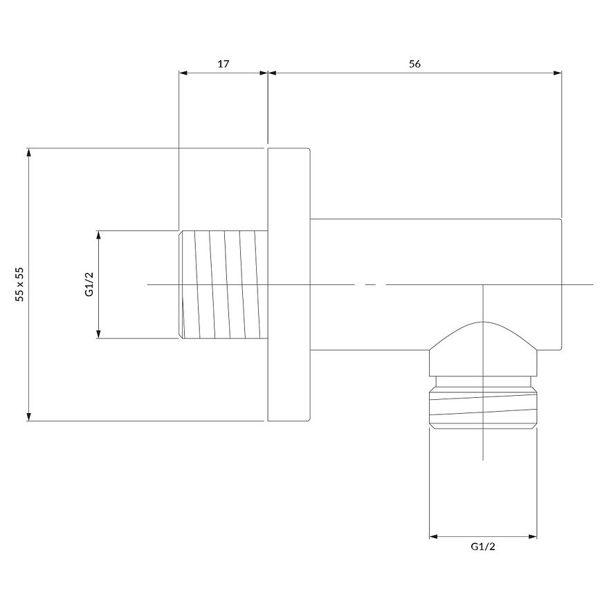 Przyłącze kątowe wykonane z wysokiej jakości mosiądzu to niezawodny element instalacji natryskowej, łączący trwałość z eleganckim wyglądem. Okrągła rozeta o średnicy 5,5 cm oraz odległość od ściany wynosząca 5,5 cm zapewniają estetyczne wykończenie i łatwy montaż. Solidna konstrukcja gwarantuje odporność na korozję i długotrwałe użytkowanie, co czyni to przyłącze idealnym wyborem do każdej nowoczesnej łazienki.