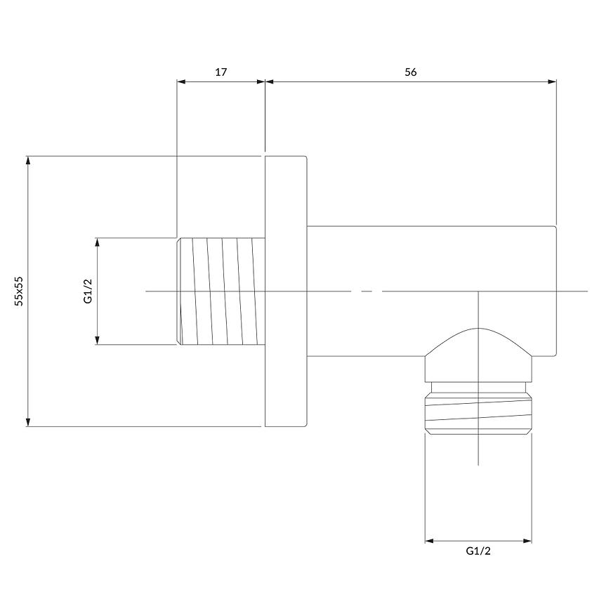 Przyłącze kątowe wykonane z wysokiej jakości mosiądzu to niezawodny element instalacji natryskowej, łączący trwałość z eleganckim wyglądem. Okrągła rozeta o średnicy 5,5 cm oraz odległość od ściany wynosząca 5,5 cm zapewniają estetyczne wykończenie i łatwy montaż. Solidna konstrukcja gwarantuje odporność na korozję i długotrwałe użytkowanie, co czyni to przyłącze idealnym wyborem do każdej nowoczesnej łazienki.
