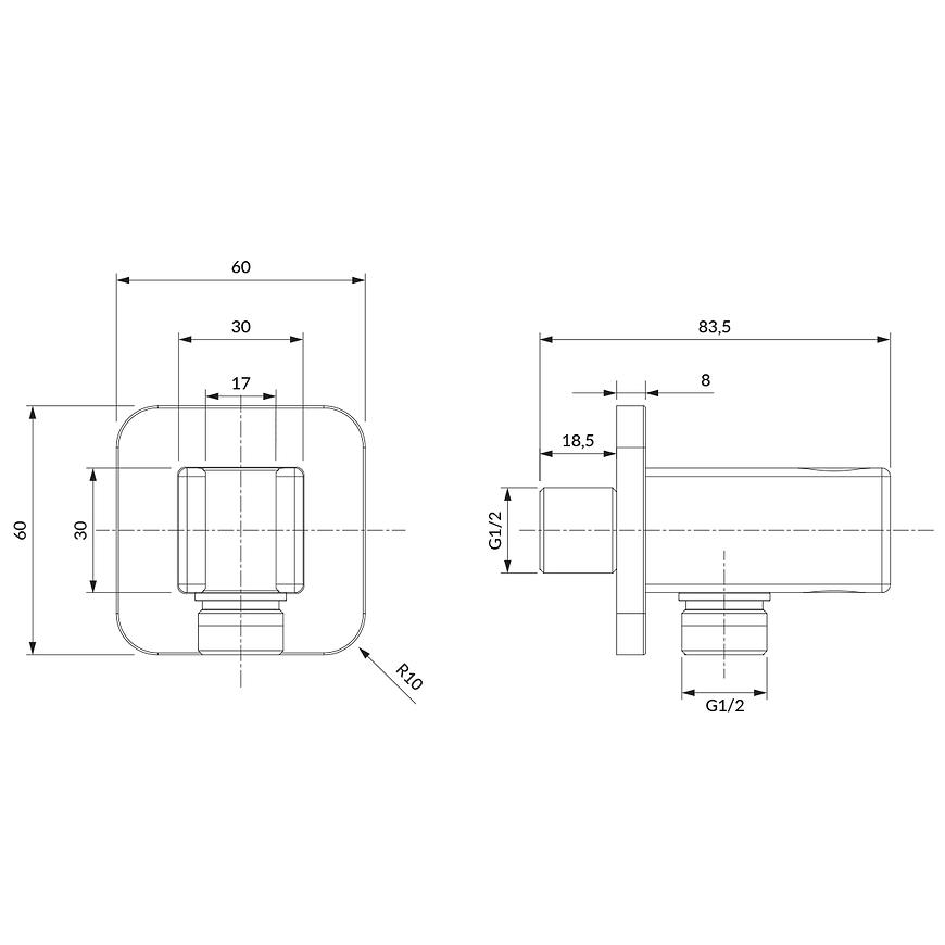 Przyłącze kątowe z uchwytem na rączkę prysznicową to funkcjonalny i estetyczny element armatury łazienkowej, wykonany z wysokiej jakości mosiądzu, który zapewnia trwałość i odporność na korozję. Wyposażone w praktyczną rozetę 6 x 6 cm i odległość od ściany 6,6 cm, doskonale sprawdza się w nowoczesnych aranżacjach. Dodatkowa wkładka ochronna gwarantuje bezpieczne i stabilne mocowanie słuchawki natryskowej. To idealne rozwiązanie dla osób ceniących wygodę i solidne wykonanie w strefie prysznicowej.