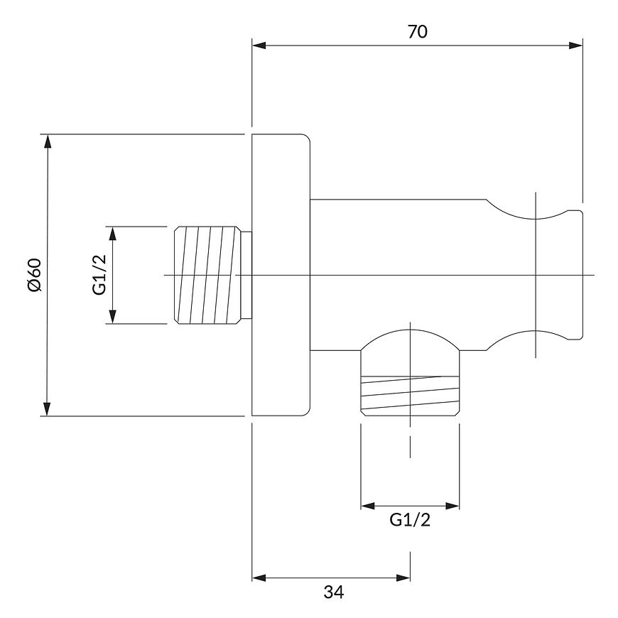 Przyłącze kątowe z uchwytem na rączkę prysznicową to funkcjonalny i estetyczny element armatury łazienkowej, wykonany z wysokiej jakości mosiądzu, który zapewnia trwałość i odporność na korozję. Wyposażone w praktyczną rozetę o średnicy 6 cm i odległość od ściany 7 cm, doskonale sprawdza się w nowoczesnych aranżacjach. Dodatkowa wkładka ochronna gwarantuje bezpieczne i stabilne mocowanie słuchawki natryskowej. To idealne rozwiązanie dla osób ceniących wygodę i solidne wykonanie w strefie prysznicowej.