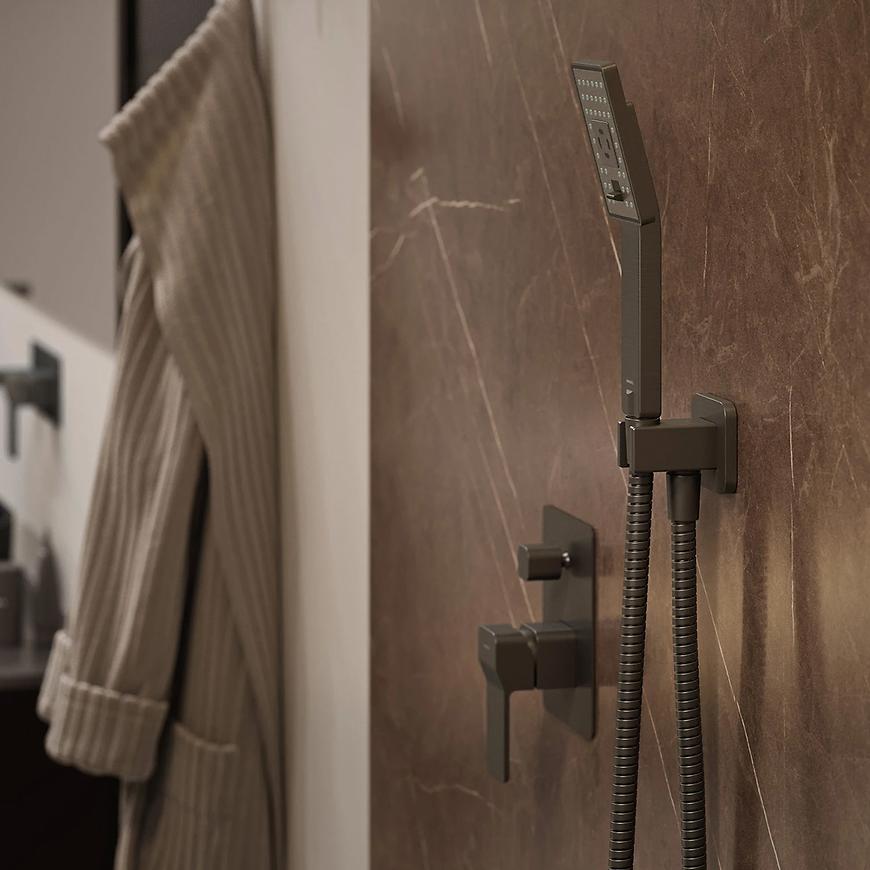 Przyłącze kątowe z uchwytem na rączkę prysznicową to funkcjonalny i estetyczny element armatury łazienkowej, wykonany z wysokiej jakości mosiądzu, który zapewnia trwałość i odporność na korozję. Wyposażone w praktyczną rozetę 6 x 6 cm i odległość od ściany 6,6 cm, doskonale sprawdza się w nowoczesnych aranżacjach. Dodatkowa wkładka ochronna gwarantuje bezpieczne i stabilne mocowanie słuchawki natryskowej. To idealne rozwiązanie dla osób ceniących wygodę i solidne wykonanie w strefie prysznicowej.