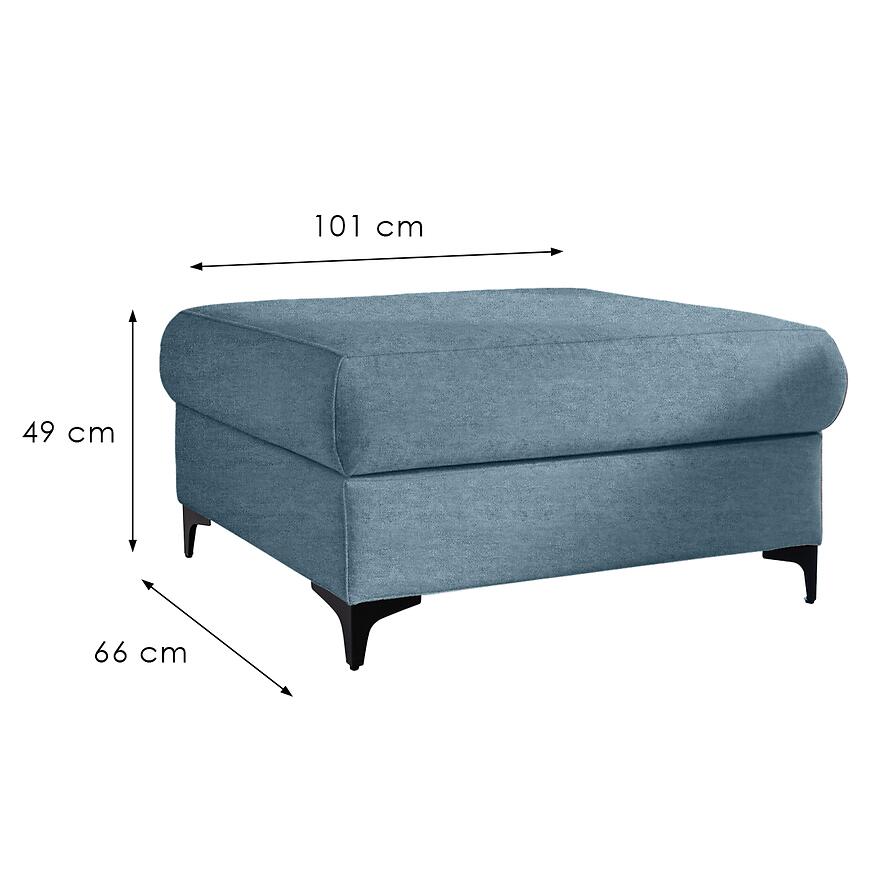 Ta niebieska pufa z czarnymi nogami świetnie sprawdzi się w roli dodatkowego siedziska, podnóżka lub efektownego elementu dekoracyjnego w salonie, sypialni czy garderobie. Jej nowoczesny design sprawia, że pasuje zarówno do wnętrz o chłodnej elegancji, jak i do bardziej przytulnych aranżacji.