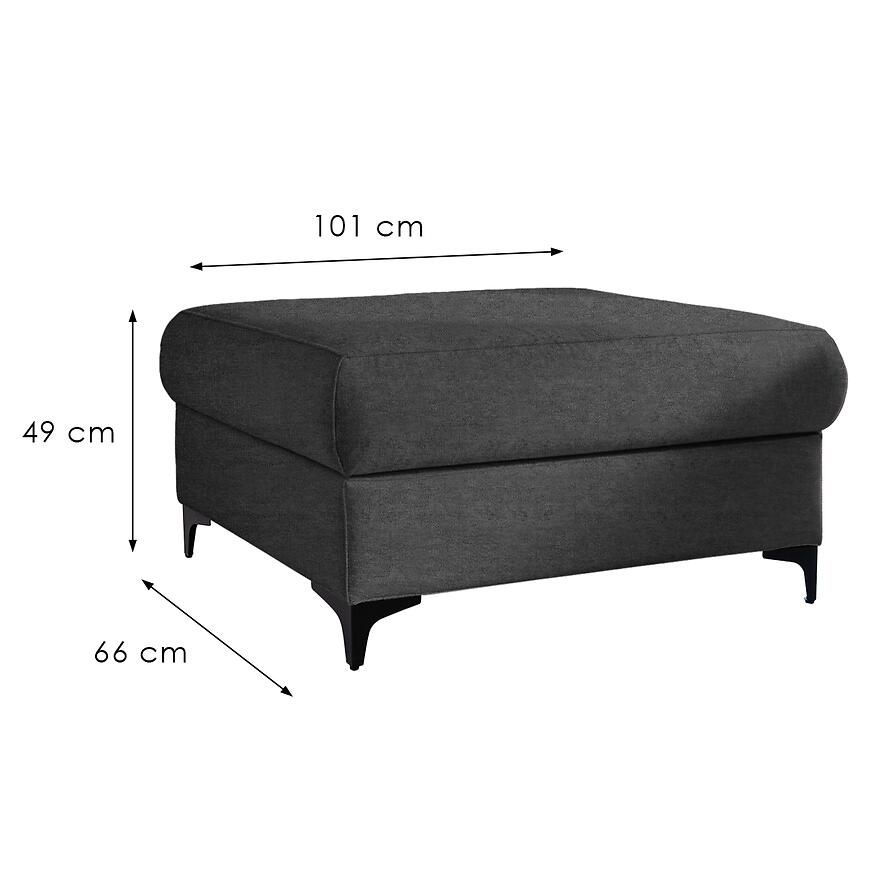 Dzięki wymiarom 49 cm wysokości, 66 cm szerokości i 101 cm głębokości, pufa zapewnia wygodę i funkcjonalność w codziennym użytkowaniu. Wysokość do siedziska 49 cm sprawia, że idealnie pasuje do sof i foteli, tworząc harmonijną przestrzeń do wypoczynku.