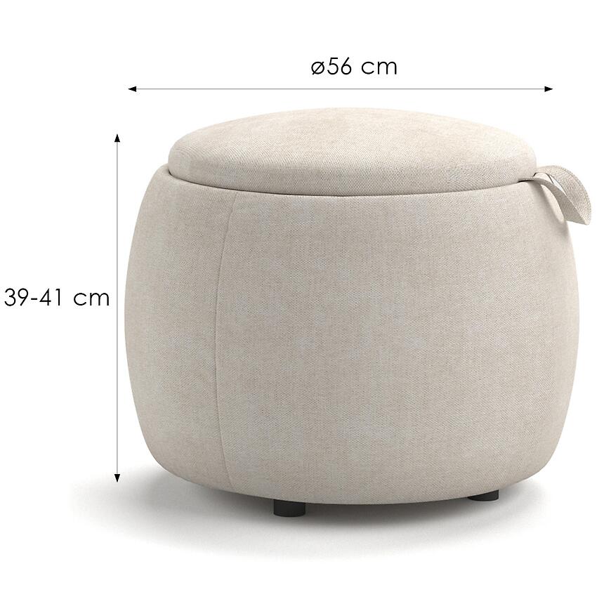 Pufa została wypełniona pianką T30, która gwarantuje sprężystość i komfort podczas siedzenia. Wysokość do siedziska wynosząca 41 cm, a wymiary 56 × 56 cm sprawiają, że pufa jest wygodnym miejscem do odpoczynku, podnóżkiem lub dodatkowym siedziskiem dla gości.