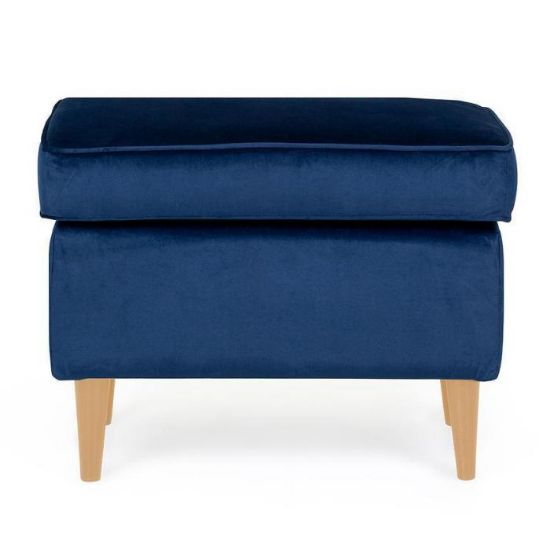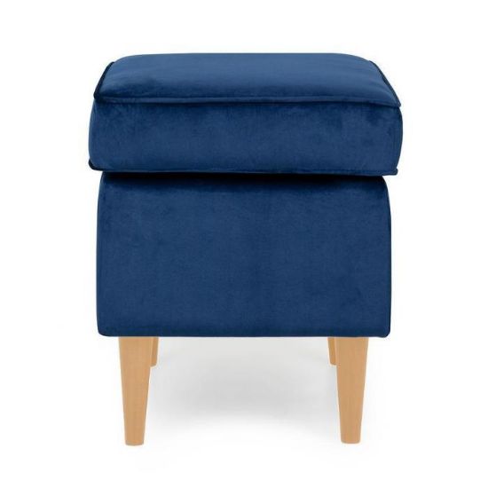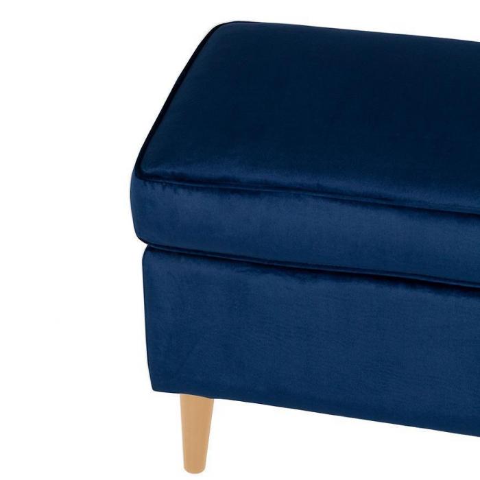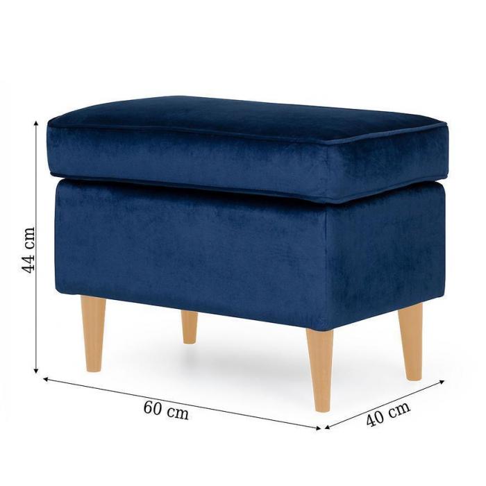 Miękkie siedzisko wypełnione wysokiej jakości pianką gwarantuje komfort, a tapicerka z tkaniny Bluvel nadaje pufie wyjątkową miękkość i luksusowy wygląd. Granatowy kolor wnosi do wnętrza spokój i klasę, tworząc przytulną atmosferę zarówno w salonie, jak i sypialni.