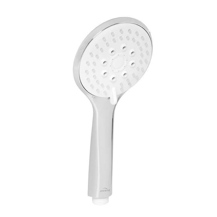 Słuchawka natryskowa LARISA, wykonana w kolorze białym/chromu. Posiada 5 funkcji strumienia.