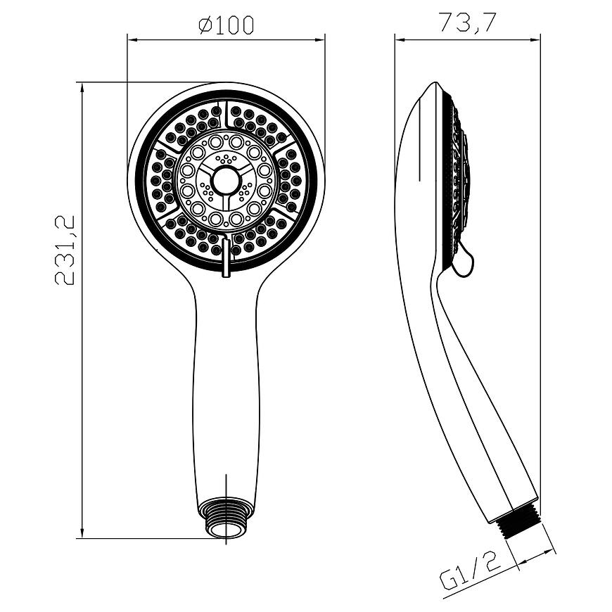 Słuchawka wykonana z wytrzymałego tworzywa sztucznego jest lekka (0,2 kg), odporna na wilgoć i łatwa w utrzymaniu czystości. Chromowane wykończenie nadaje łazience nowoczesny wygląd.