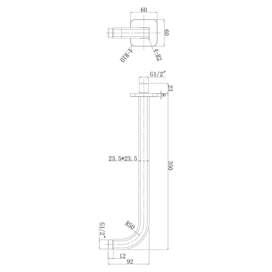 Ramię prysznicowe ścienne o długości 35 cm to funkcjonalny i estetyczny element armatury łazienkowej, wykonany z wysokiej jakości mosiądzu, który zapewnia trwałość oraz odporność na korozję. Wyposażone w standardowe przyłącza 1/2" do wody i deszczownicy, ramię natrysku gwarantuje łatwy montaż i kompatybilność z większością systemów prysznicowych. To idealny wybór do montażu deszczownicy, który pozwala stworzyć komfortową i nowoczesną strefę prysznicową.