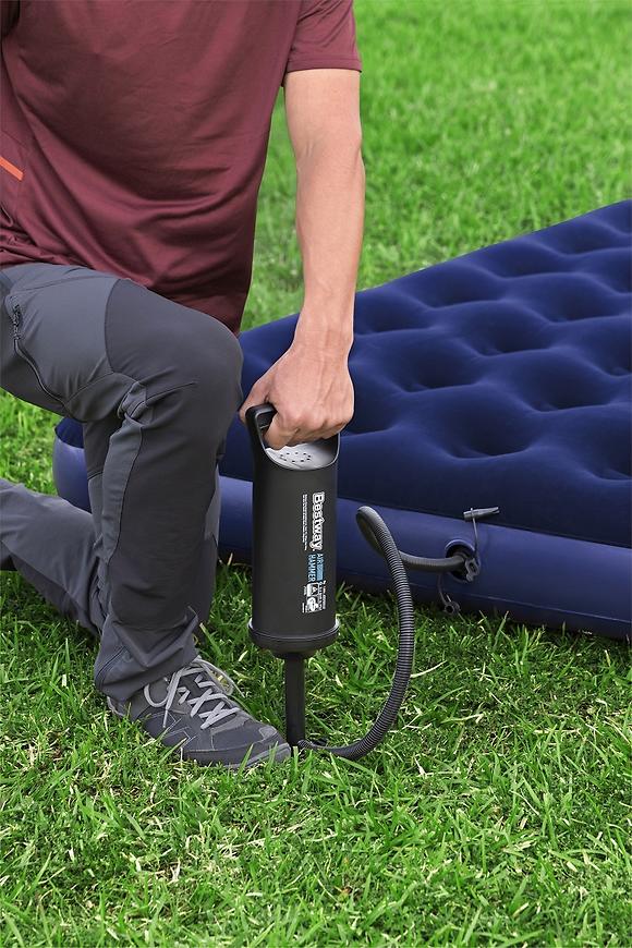 Pompa jest kompletnym rozwiązaniem, ponieważ zawiera 3 adaptery zaworów. Dzięki temu doskonale sprawdza się w przypadku różnych nadmuchiwanych przedmiotów, od dmuchanych materacy po piłki czy baseny.