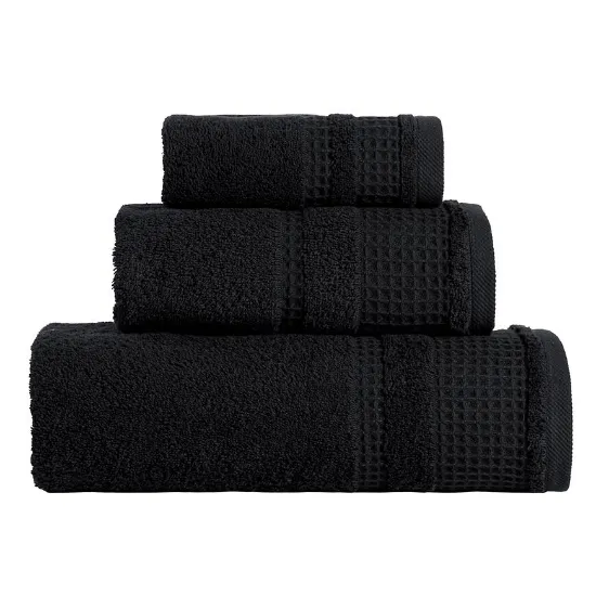 Ręcznik Olea w kolorze czarny w rozmiarze 50x90 cm to praktyczny i estetyczny ręcznik bawełniany, który doskonale sprawdzi się w codziennym użytkowaniu. Został wykonany z wysokiej jakości 100% bawełny o odpowiedniej gramaturze, co przekłada się na bardzo dobrą chłonność, miękkość oraz odporność na intensywne użytkowanie. Naturalna struktura włókien sprawia, że ręcznik jest przyjemny w dotyku i bezpieczny dla osób z wrażliwą skórą. Subtelny, elegancki wzór nadaje mu dekoracyjny charakter, dzięki czemu ręcznik Olea harmonijnie wpisuje się w wystrój nowoczesnych i klasycznych łazienek. Rozmiar 50x90 cm czyni go uniwersalnym rozwiązaniem jako ręcznik kąpielowy do rąk i ciała, idealny do domu, hotelu czy strefy SPA.