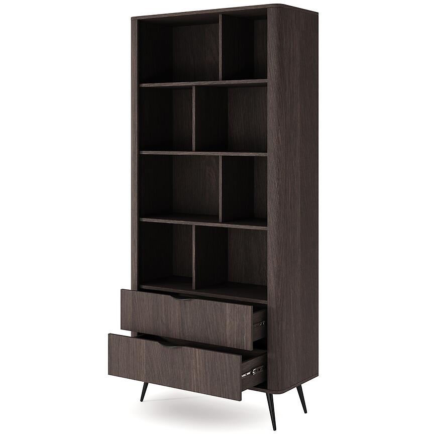 Regał o szerokości 88,2 cm, wysokości 193,8 cm i głębokości 38 cm zapewnia dużą powierzchnię do przechowywania i eksponowania książek, dekoracji, dokumentów czy akcesoriów biurowych. To idealny wybór do wnętrz, w których liczy się porządek oraz harmonijny wygląd przestrzeni.
