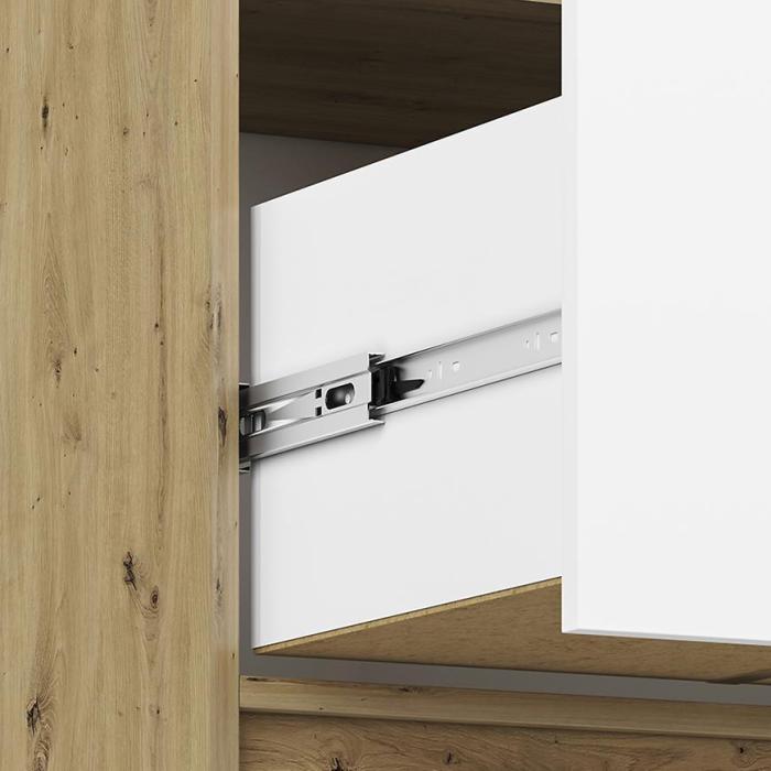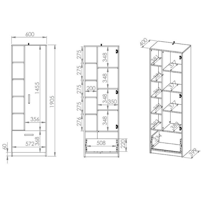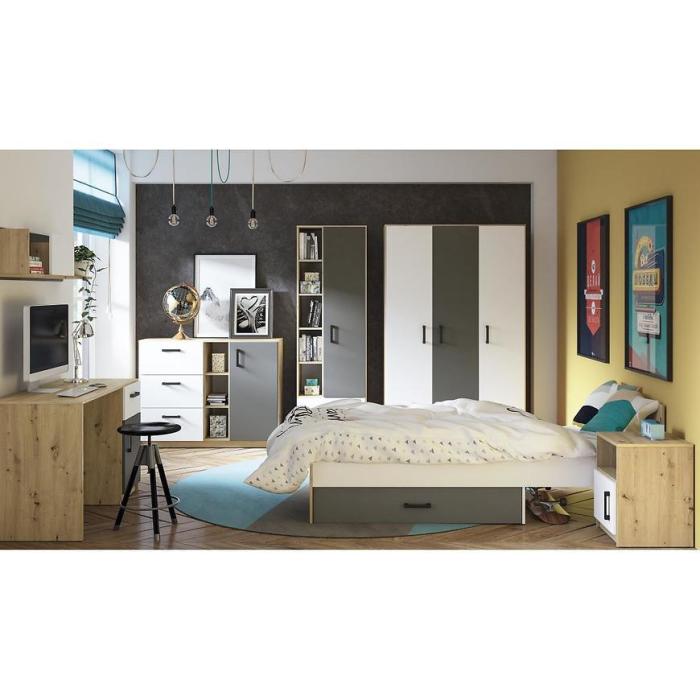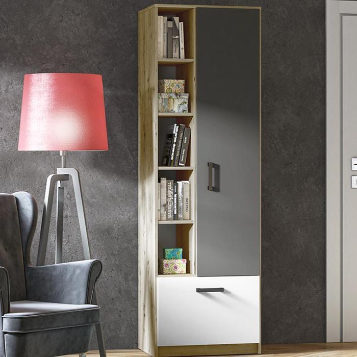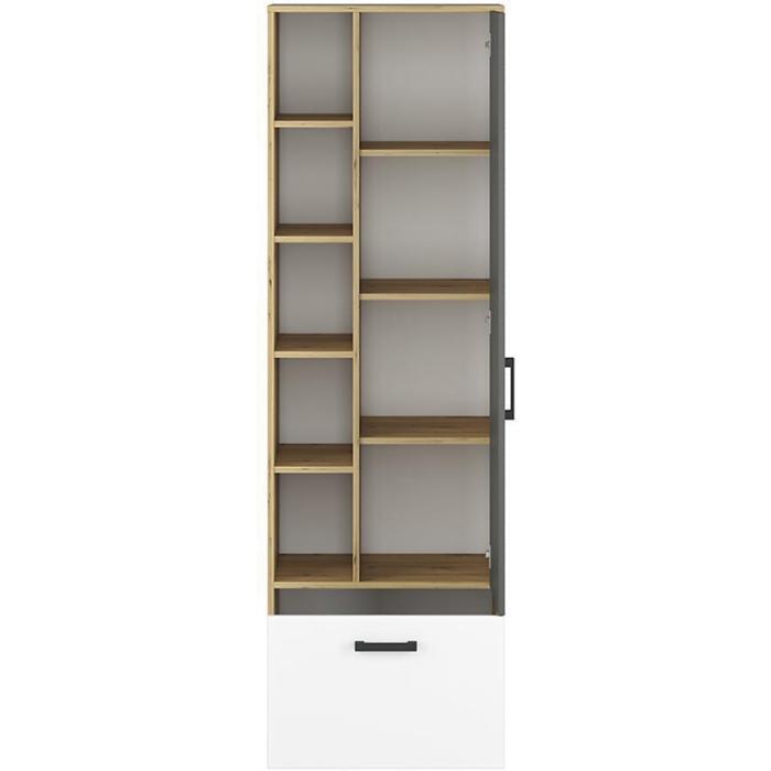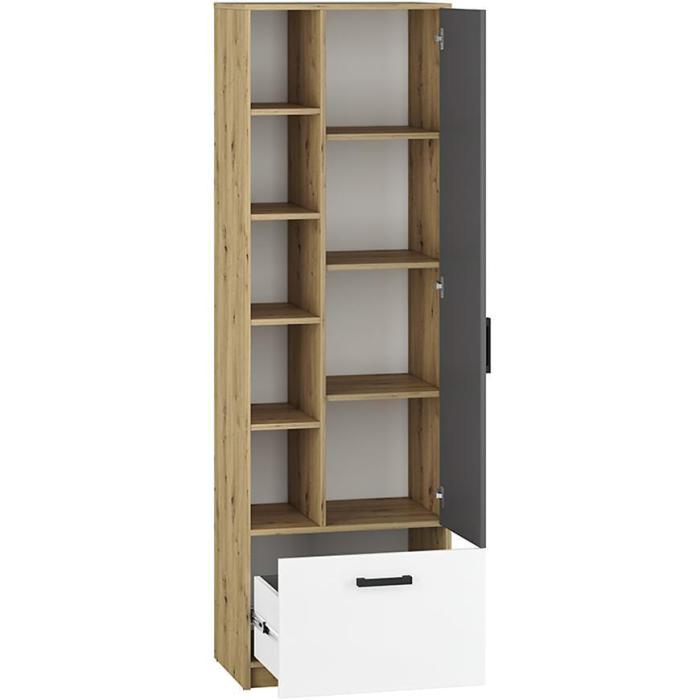 Regał Fini w kolorze dąb artisan/biały/antracyt to funkcjonalny i praktyczny mebel. Posiada stabilną konstrukcję oraz ciekawe wykończenie.
