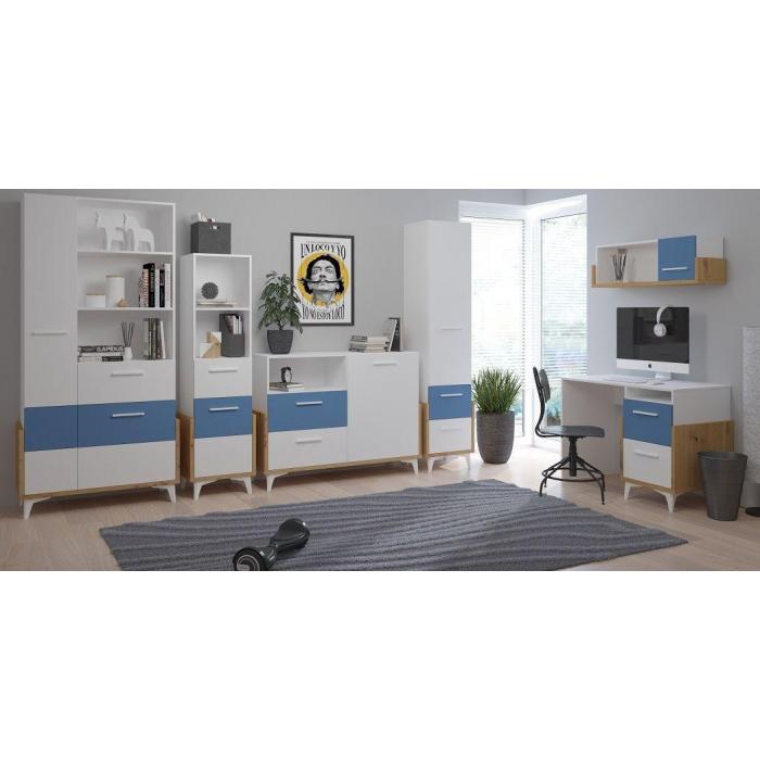 dąb artisan/biały/niebieski
