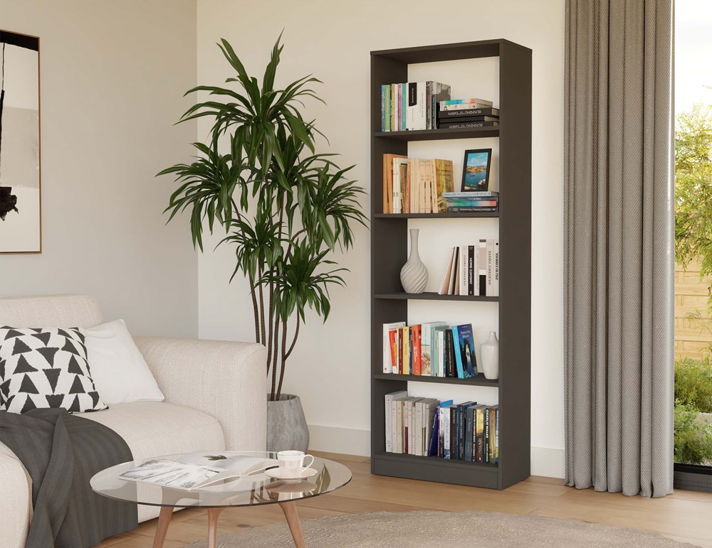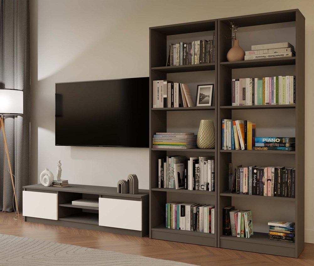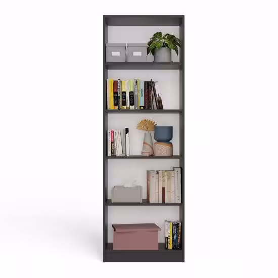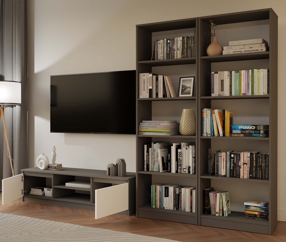 Regał Basic to idealne rozwiązanie dla osób ceniących elegancję połączoną z praktycznością. Połączenie antracytu z kontrastującymi białymi plecami nadaje mu nowoczesny, a zarazem uniwersalny charakter, doskonale komponujący się z różnymi aranżacjami wnętrz.
