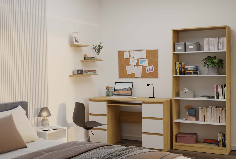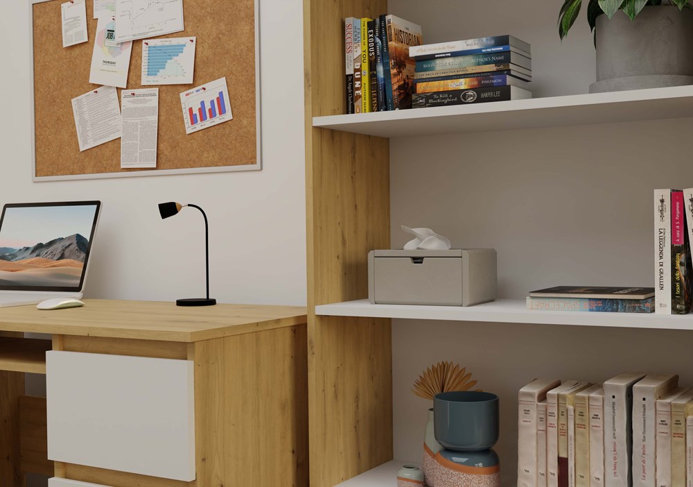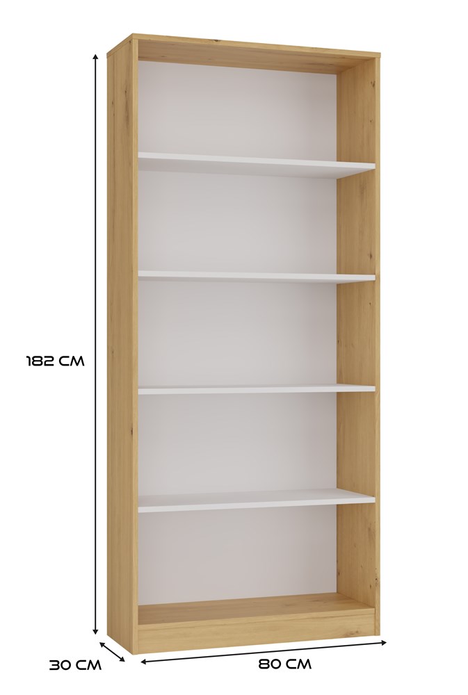 Regał Basic to idealne rozwiązanie dla osób ceniących elegancję połączoną z praktycznością. Połączenie ciepłego odcienia dębu artisan z kontrastującymi białymi półkami nadaje mu nowoczesny, a zarazem uniwersalny charakter, doskonale komponujący się z różnymi aranżacjami wnętrz.