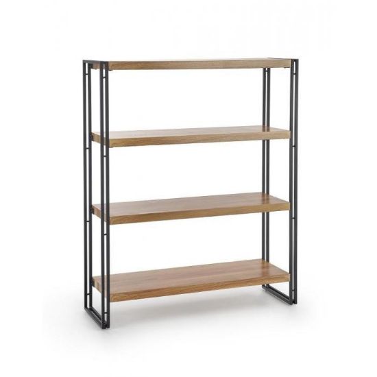 Regał Bolivia wykonany został z płyty MDF okleinowanej w wybarwieniu dąb złoty z czarnym stelażem. Stelaż stalowy malowany proszkowo. Bryły dostępne w dwóch opcjach: z 4 lub 5 półkami. Regał Bolivia to idealny mebel dla osób ceniących funkcjonalne, a zarazem eleganckie rozwiązania. Ze względu na uniwersalny design regał wpasuje się zarówno w klasyczne, jak i bardziej nowoczesne aranżacje, ozdabiając wnętrze oraz dodając mu oryginalności.