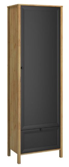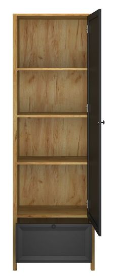 Regał Brent 1D1S to nowoczesny i funkcjonalny mebel, który doskonale sprawdzi się w salonie, biurze lub sypialni. Połączenie dekoru dąb craft złoty z czarnymi frontami nadaje mu elegancki, loftowy charakter. Wyposażony w 1 drzwi, 1 szufladę i 4 półki, oferuje praktyczną przestrzeń do przechowywania. Solidna konstrukcja z płyty MDF i laminowanej płyty meblowej gwarantuje trwałość. Wymaga samodzielnego montażu. Idealny wybór do wnętrz w nowoczesnym i industrialnym stylu.