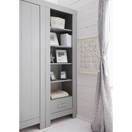 Regał CALMO to nowoczesny i praktyczny dodatek do pokoju dziecięcego, który łączy w sobie elegancję i funkcjonalność. Charakteryzujący się szarym, matowym wykończeniem oraz minimalistycznym designem, doskonale wpisuje się w nowoczesne wnętrza.