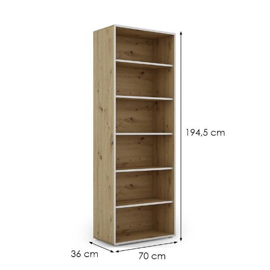 Regał Capannoli rg 70 dąb artisan/białyto doskonałe rozwiązanie dla tych, którzy cenią sobie funkcjonalność i estetykę w jednym. Jego konstrukcja umożliwia efektywne wykorzystanie przestrzeni, tworząc miejsce do eksponowania dekoracji, książek czy innych cennych przedmiotów.
