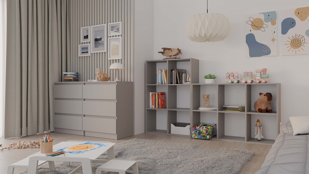 Regał Carl 2 to funkcjonalny mebel, który doskonale sprawdzi się w każdym wnętrzu, oferując praktyczne miejsce do przechowywania książek, dokumentów i różnorodnych przedmiotów codziennego użytku. Jego uniwersalny design sprawia, że harmonijnie wpasuje się zarówno w aranżacje pokoju dziecięcego, jak i salonu, biura czy gabinetu. Dzięki prostym liniom i minimalistycznemu wyglądowi regał ten łatwo dopasuje się do różnych stylów wnętrzarskich, od nowoczesnych po bardziej klasyczne.