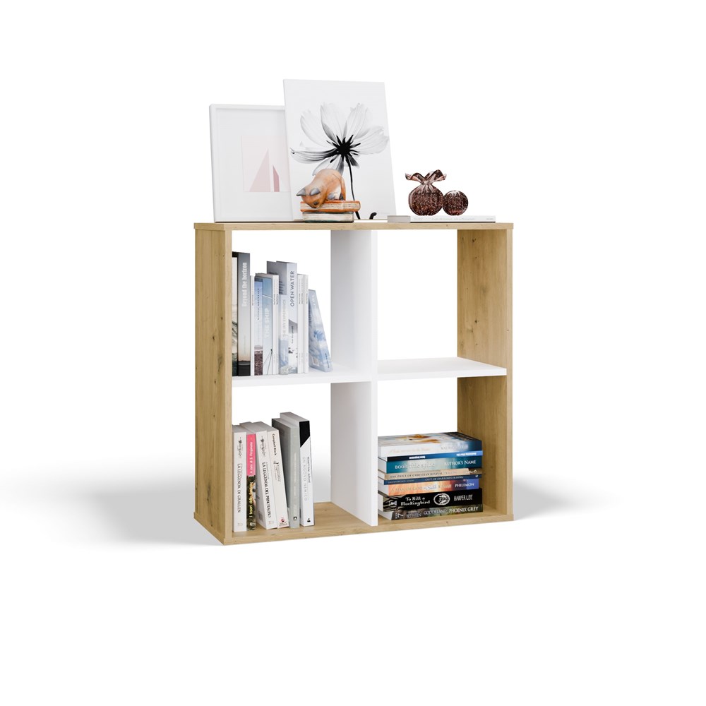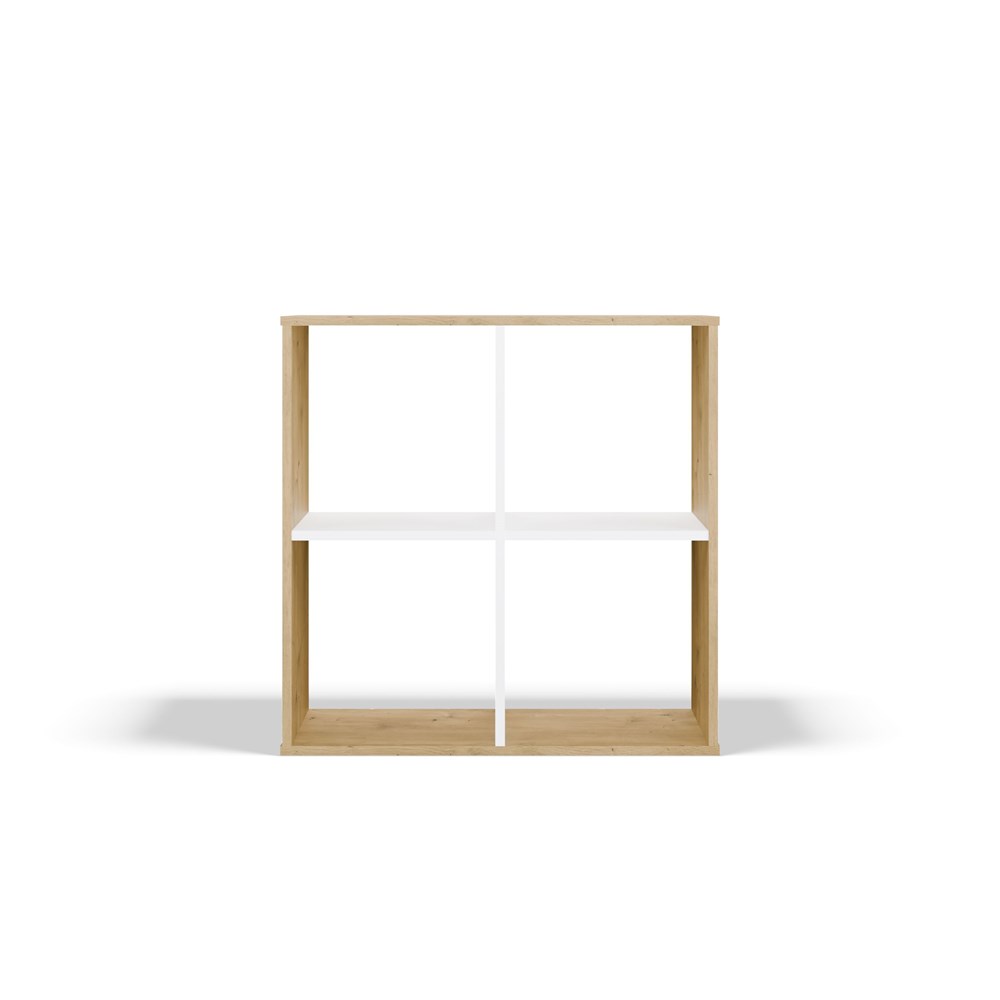 Wykonany z laminowanej płyty wiórowej o grubości 16 mm, regał Carl cechuje się trwałością, łatwością w utrzymaniu czystości oraz nowoczesnym wyglądem. Jego komorowa konstrukcja typu 2x2 (cztery równe przegrody)- Wymiary komory: 34,5 cm x 34,5 cm sprawia, że mebel sprawdzi się zarówno jako regał na książki, jak i miejsce do przechowywania dekoracji, dokumentów czy akcesoriów domowych.