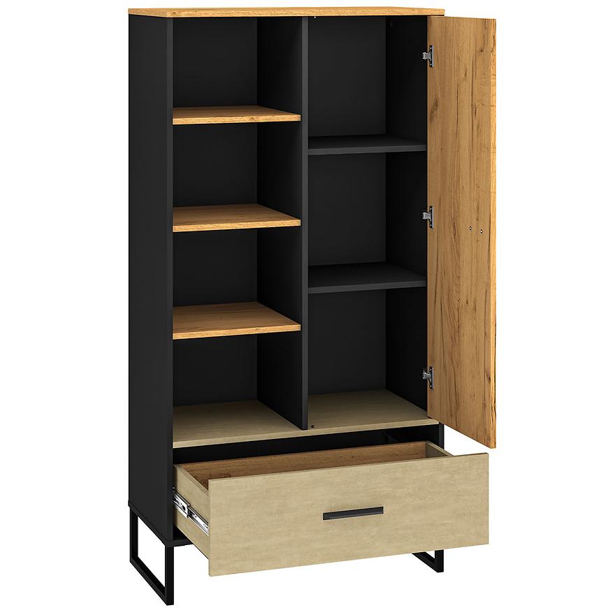 Regał Colt 04 należy do kolekcji COLT, co oznacza, że można go łatwo zestawić z innymi meblami z tej serii, tworząc spójną i harmonijną aranżację wnętrza. Idealnie nadaje się do przechowywania książek, dekoracji oraz innych przedmiotów, pomagając utrzymać porządek i organizację w pomieszczeniu.