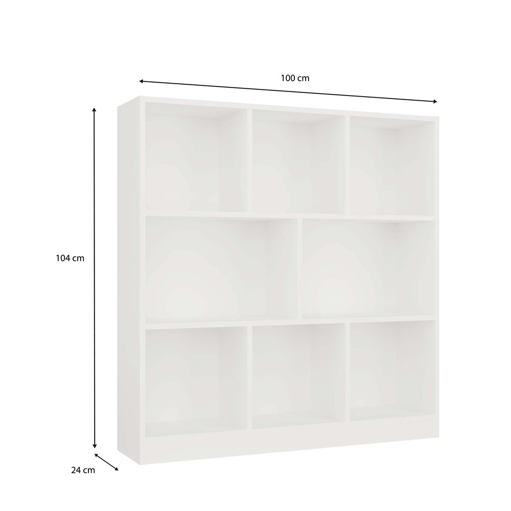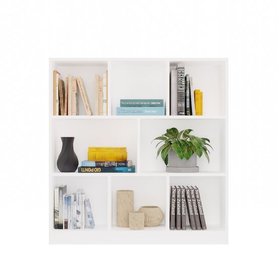 Ośmioprzegródkowy układ idealny na książki, dekoracje lub pudełka do przechowywania.