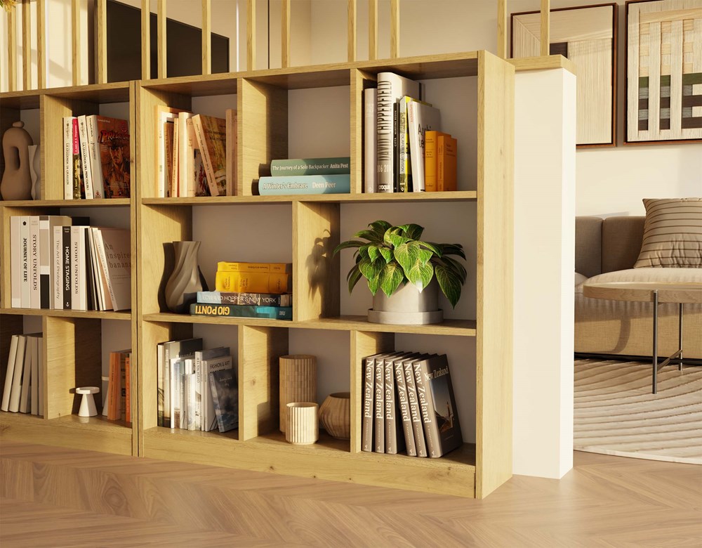 Ośmioprzegródkowy układ idealny na książki, dekoracje lub pudełka do przechowywania.
