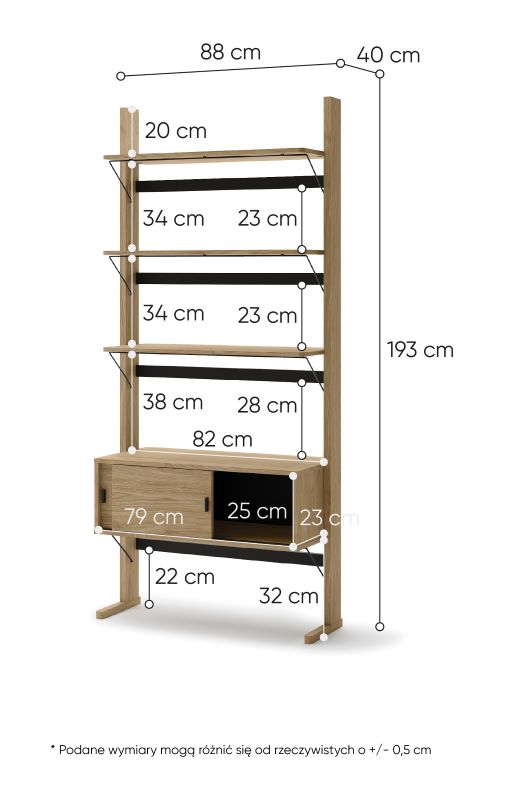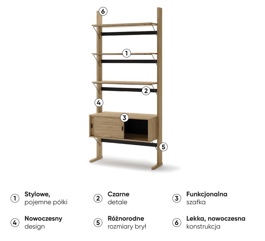 Regał dwudrzwiowy z półkami Ollie OL-01.