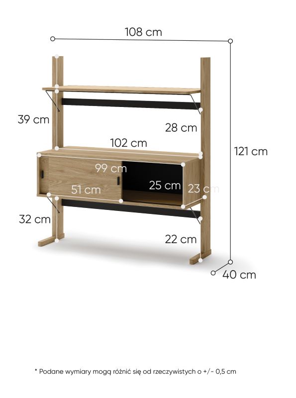Regał dwudrzwiowy z półkami Ollie OL-03.